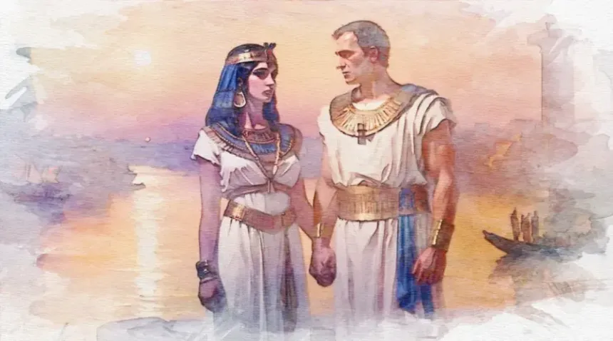 Aşk hikâyeleri, 10 yıldan uzun bir süre önce, ikisi de gençliklerinin baharındayken başlamıştı. Kleopatra, müreffeh Mısır’ın ilahi Ptolemaios hükümdarıydı; zeki, tatlı dilli, çekici, bilgili ve Akdeniz’in en zengin kişisiydi. Politikacı ve asker Antonius ise Herkül’ün soyundan geldiği iddia edilen geniş omuzlu, kalın enseli, gülünç derecede yakışıklı, kalın bukleli saçlı ve kartal gibi yüz hatlarına sahip bir adamdı.