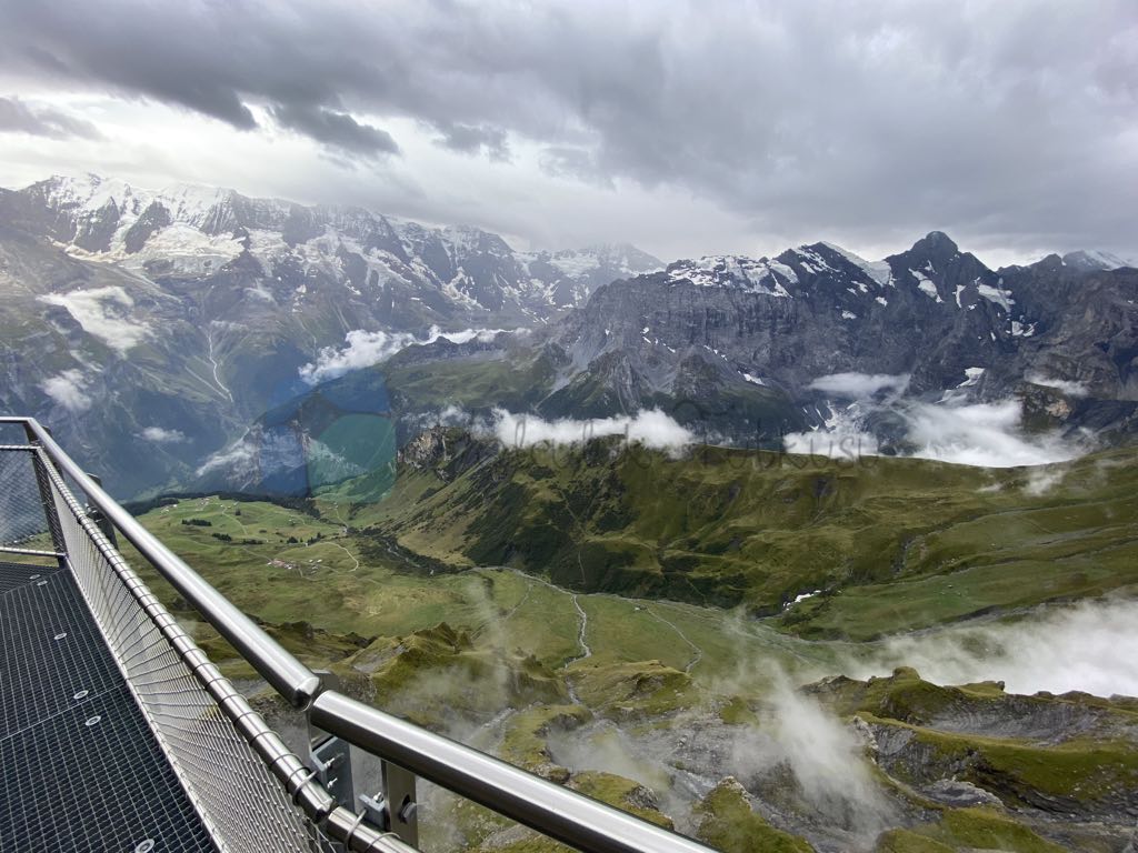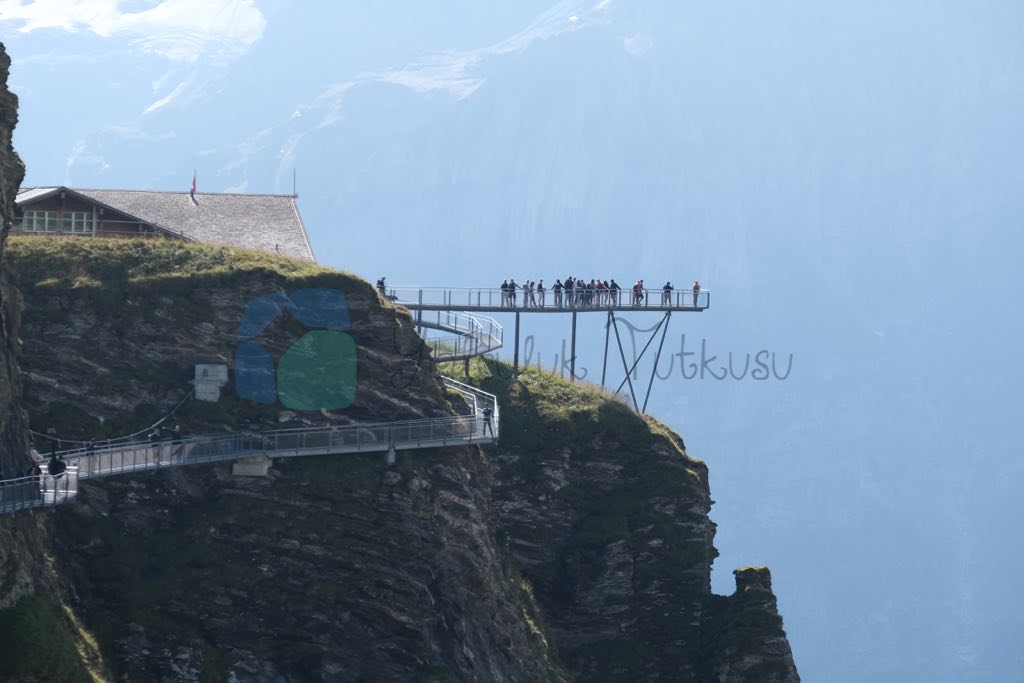 Burada biraz zaman geçirdikten sonra kasabanın diğer ucundaki Shilthorn İstasyonuna giderek Piz Gloria teleferiğine bindik. Burada Top of Europe geçerli değil ama %25 indirim sağlıyor. HFC’ınız da varsa bizim gibi 85 CHF’lik Piz Gloria Shilthor biletini 32 CHF’ye alabiliyorsunuz. Yukarı çıkarken burada Birg ara istasyonu var. Burada inip teleferik değiştiriliyor ama zaten inmeniz lazım çünkü Cliff Walk ve Thrill Walk burada yapılıyor. Buradaki Cliff Walk First’dekinden daha etkileyici kesinlikle.