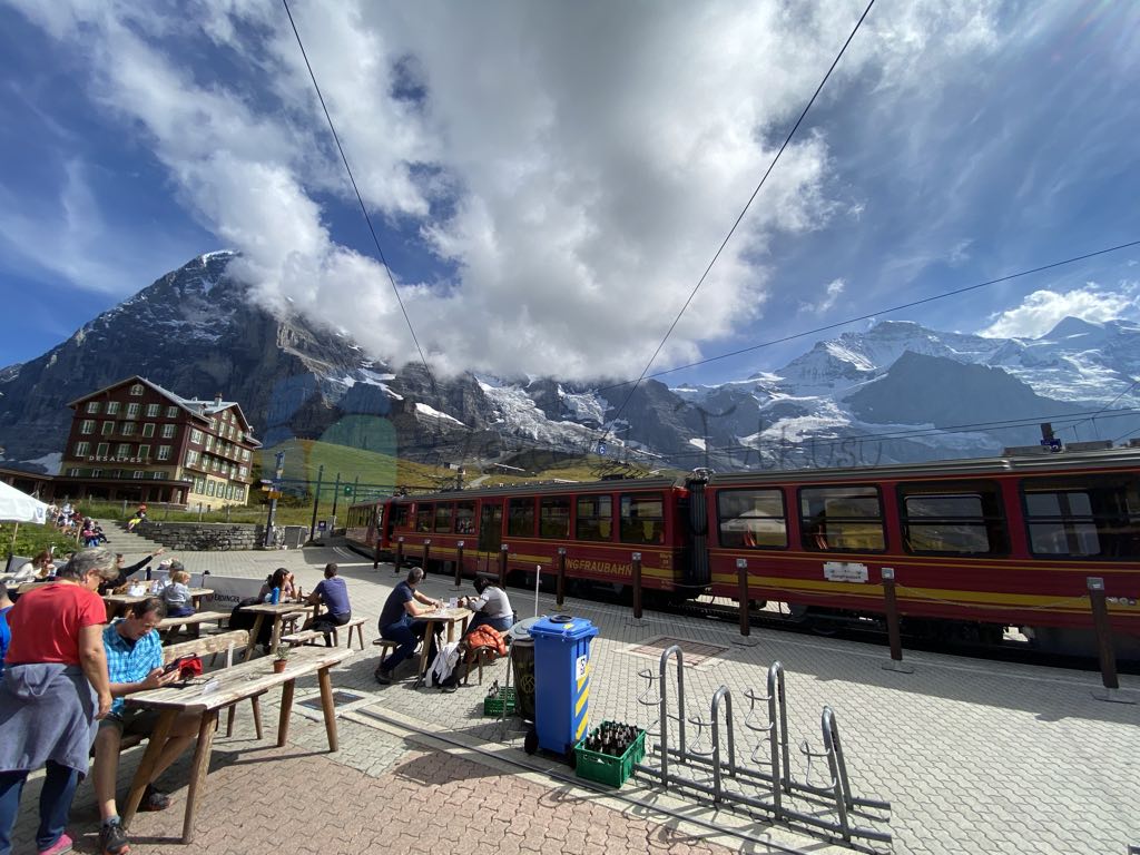 Eiger Express ile ilk durak olan Eigergletscher’e ulaşmanız yaklaşık 20 dakika sürüyor. Eiger Express adlı bu dev teleferik bizim bölgede bindiğimiz en büyük teleferik oldu. Eigergletscher’de indiğinizde binanın dışına çıkarak biraz manzaranın tadını çıkarmalısınız. Daha sonra bu defa trene binerek Jungfrajoch’a geçmeniz gerekiyor. Bu kısmı anlayamamıştık bölgeye gelmeden. Zirvenin ilk kısmı teleferikle, daha yüksek kısmı trenle nasıl olabilir? diye. Gidince gördük ki dağların en zirvelerine de trenle çıkılabiliyormuş.