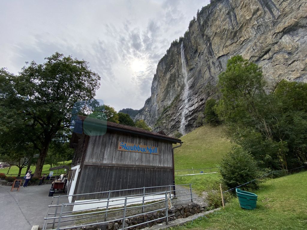 Sonraki durağımız olan Trummelbach Şelalesi için Lauterbrunnen’e gitmemiz gerekiyor. Bunun için Interlaken Ost İstasyonundan 13:40 Lauterbrunnen trenine bindik ve yaklaşık 20 dk’da Lauterbrunnen’de olduk. Lauterbrunnen’den Trummelbach Şelalesi yaklaşık yürüyerek 40 dk uzaklıkta yer alıyor. Yol da düze ve çok panoramik olduğu için biz yürüyerek gitmeye karar verdik. Yolda ilk olarak sağ tarafta kalan ve Lauterbrunnen ile özdeşleşen Staubbach Şelalesi’ni görüyorsunuz. Bu şelale çok gür bir şelale değil ama çok yüksekten akması nedeniyle çok estetik.