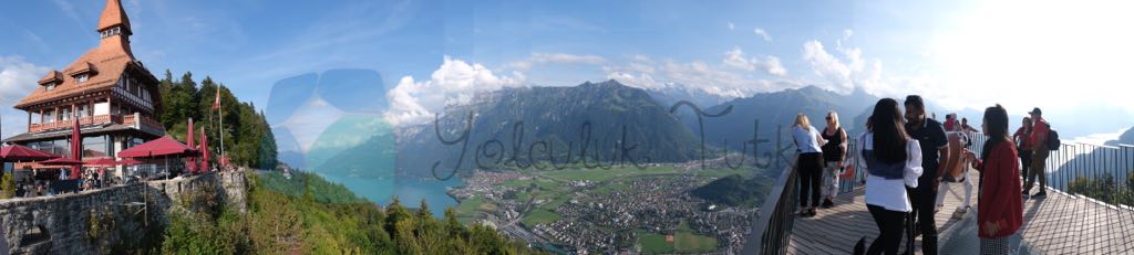 Interlaken’e varınca ilk olarak iki gölü ve şehri aynı anda görme imkanı veren bölgenin en yüksek tepelerinden biri olan Harder Klum’a gittik. Interlaken Ost istasyonunda indiğinizde Harder Klum Funicular istasyonu yaklaşık 600 m uzaklıkta. Buradan zirveye çıktığınızda tüm şehrin yapısını daha iyi anlayabiliyorsunuz. Bu arada bölgedeki tek düz şehir galiba Interlaken. Burada biraz vakit geçirdikten sonra Interlaken’e indik ve şehri biraz turlayıp bir yemek yedikten sonra yine trenle Grindelwald’e döndük.