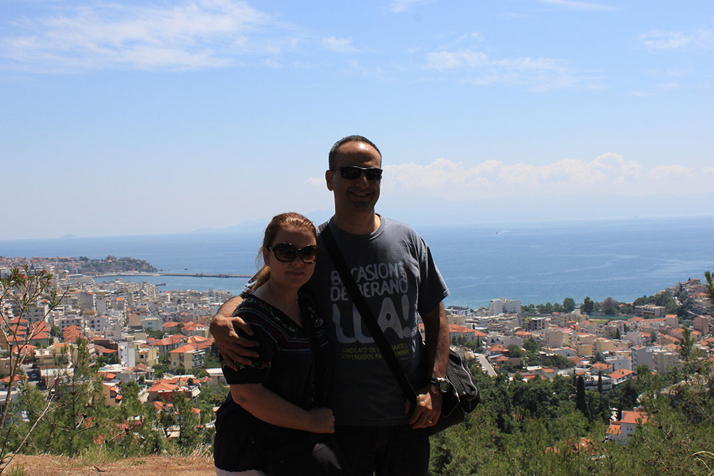 Yaklaşık 2,5 saatlik bir yolculuktan sonra Kavalaya vardık. Tekirdağ’a bu kadar yakın bir şehrin üzülerek söylüyorum ki bu kadar avrupalı olması insanı şaşırtıyor ve üzüyor. Neden benim şehrim bu kadar sevimli olamıyor diye üzülüyorsunuz. Suriye’ye Kilis’den geçtiğimizde nasıl bu kadar yakın ve aynı coğrafyayı aynı iklimi paylaşan bir şehir bu kadar geri kalabilir diye şaşırmıştık şimdi aynı düşünceleri Tekirdağ ve kavala için aklımızdan geçirdik. Neyse; Kavalanın kardeş şehri Tekirdağ olmasına rağmen esasında kardeş şehir Kapadokya olmalıymış. 1923 deki nüfus mübadelesi sırasında Kapadokyadaki rumlar buraya yerleşmiş. Bu olayın izleri ile sık sık karşılaşıyorsunuz Kavalada. Türkçe konuştuğunuzu duyan Türk kökenli kişiler ve sizinle iletişim kurup kendi kökenlerinin nereden olduğunu anlatıyorlar. Özellikle yaşı 50 ve üstü olanlar türklere karşı daha sevecen. Gençler sanırız aldıkları eğitimdeki şartlanmalardan olacak biraz daha soğuklar. Ama yanlış anlaşılmasın sadece bir önceki kuşak kadar sıcak değiller o kadar yoksa herhangi bir olumsuz davranış söz konusu değil. Bazı şehirleri ilk görüşte seversiniz ya Kavala da öyle bir izlenim bıraktı bizde. Elimizde görülmesi gerekenler adı altında kısa sayılabilecek bir liste var bu nedenle çok acelemiz yok. Hotelimiz Egnetia’ya yerleşiyoruz. İyi bir seçim olduğunu söylemeliyiz. Özellikle mevki nedeni ile tam bir Kavala manzarasını odanızdan görüyor olmanız çok hoş.