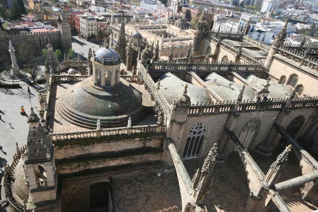 Tabii ki bir katedrali en büyük olmasının birçok ölçütü var. (en uzun, en hacimli, en fazla kişinin ibadet ettiği gibi) ama birçok açıdan Sevilla Katedrali dünyanın en önemli 3 katedrali arasına girer. Katedral çok görkemli her kısmında görülmesi gerekli çok eser ve bölüm var ama 1890’da yapılan ve Kastilla, Leon, Aragon ve Navarra Kralları tarafından omuzlar üstünde taşınırken gösterilen “Kristof Kolomb’un Mezarı” Katedralin içerisinde önemli bir yeri oluşturuyor. “La Giralda” adı ile de bilinen esas adı olan Katedral adını Katedrale sonradan eklenen kulenin tepesindeki inancı simgeleyen bronz rüzgar gülünden alır ve en iyi “Plaza de Virgen” meydanından izlenir. Aynı rüzgar gülü Katedral’in “Plaza de Triunfo” meydanına bakan kapısının girişinde de birebir ölçülerde vardır. Katedralin giriş ücreti 8 euro olup bu ücrete Giralda kulesine giriş de dahildir. Kuleye çıkış için asansör olmaması olumsuz tarafı olmasına rağmen çıkışın basamaklı değil rampa şeklinde olması olumlu tarafı. Biraz zor olmakla birlikte Sevilla’yı yukarıdan görmek için mutlaka çıkmanızı öneririz.