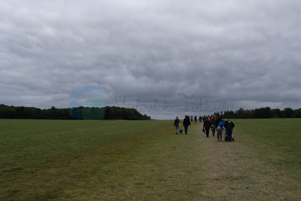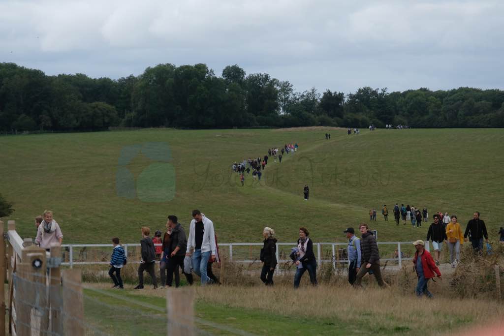 Şimdi size bir tüyo vereceğiz: çünkü “Anıtın 3-4 metre uzağına değil de 30 m uzağına kadar gitsem ve Stonehenge’i görsem yeter” diyorsanız sırada beklemenize de ücret ödemenize de gerek yok. Bilet satılan yerin yanında direkt olarak geçin zaten burada bilet kontrolü yapılmıyor. Girişte bazı taş örnekleri ve klübeler var onları gezin. Sonra herkesin akın akın yürüdüğü yere doğru siz de yaklaşık 30 dakika bir araziden yürüyün. Son 100 metrede bilet kontrolü yapıldığını göreceksiniz.
