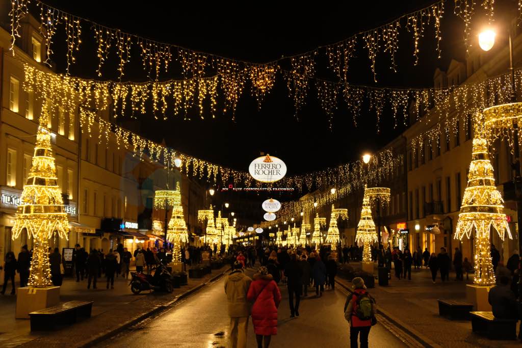 Burada Noel ile Yeni Yıl arası bir tarihte burada olduğumuz için her yer oldukça süslenmiş. Bu konuda Polonya oldukça başarılı. Birçok noktaya da Warswaza yani Varşova yazılı ışıklı çerçeveler yerleştirilmiş Varşova hatırası fotoğraf çekilebilmesi için. Nowy Swiat üzerinde Varşova Üniversitesi, Palac Branickich, Pawilony Nowy Swiat, Palac Zamoyskich, Palac Staszica, Pomnik Mikolaja Kopernika, Holy Cross Church, Palac Tyszkiewiczow-Potockich, Palac Czetwertynskich-Uruskich, gibi saray ve anıtlar bulunuyor.