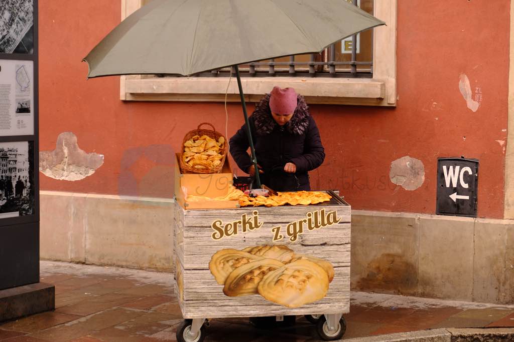 Yarıdan kesilmiş baget ekmeğe benzer ama biraz daha geniş bir ekmeğin üzerine farklı şeyler koyarak bir tür açık sandviç olarak tarif edebileceğimiz Zapiekanka her yerde satılıyor ve çok tüketiliyor.