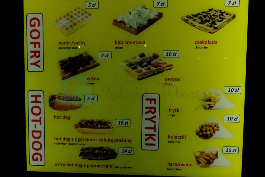 Yine adım başı satılan diğer bir yiyecek de Gofry adı verilen Waffle. Bunun üzerinde de krem şanti ya da başka şeyler koyarak yiyorlar.